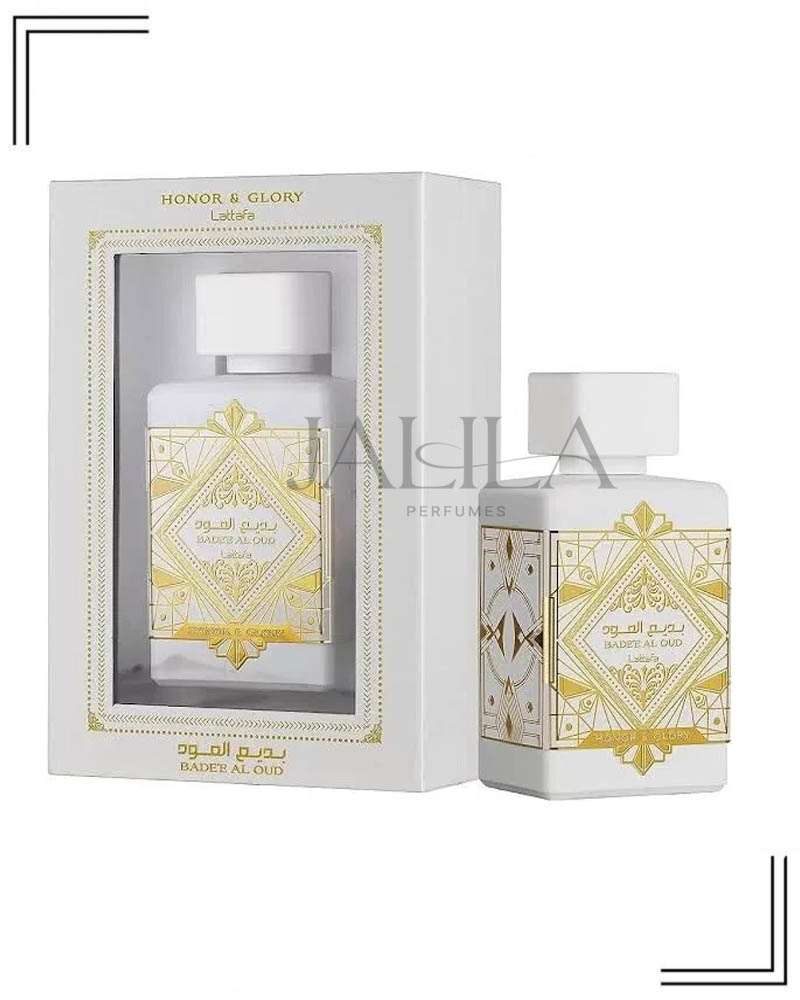 LATTAFA BADEE AL OUD HONOR & GLORY FOR UNISEX EDP 100 ML BD9.000 BD13.500 33%OFF Lattafa Bade'e Al Oud Honor Glory Perfumes is a fragrance for women and men. This is a new fragrance. Bade'e Al Oud Honor Glory was launched in 2023. Top notes:- Pineapple and Creme Brulee. Middle notes:- Cinnamon, Turmeric, Benzoin and Black Pepper. Base notes:- Vanilla, Sandalwood, Cashmeran and Moss. Add to cart PRODUCT DESCRIPTION main accords sweet, warm spicy, fruity, vanilla, woody, powdery, cinnamon, tropical, amber. Top Notes Pineapple Creme Brulee Middle Notes Cinnamon Turmeric Benzoin Black Pepper Base Notes Vanilla Sandalwood Cashmeran Moss LATTAFA BDREE AL OUD HONOR & GLORY, BDREE AL OUD HONOR & GLORY, LATTAFAL HONOR & GLORY