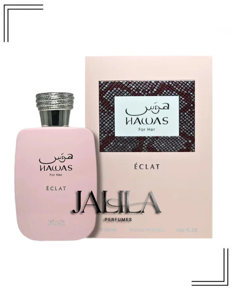 RASASI HAWAS ECLAT FOR WOMEN EDP 100 ML BD14.800 BD19.000 22%OFF Rasasi Eclat is a Oriental Floral fragrance for women. This is a new fragrance. Eclat was launched in 2025. The nose behind this fragrance is Amandine Galliano. Top notes:- Litchi, Bergamot, Pear and Pistachio. Middle notes:- Rose and Incense. Base notes:- Vanilla, Musk, Amber and Woodsy Notes. - ** PARFUMS DE MARLY DELINA LA ROSEE (W) EDP **. Add to cart PRODUCT DESCRIPTION main accords fruity, rose, amber, vanilla, citrus, powdery, musky, woody, fresh, tropical. Top Notes Litchi Bergamot Pear Pistachio Middle Notes Rose Incense Base Notes Vanilla Musk Amber Woodsy Notes RASASI HAWAS, RASASI HAWAS ECLAT EDP, RASASI HAWAS FOR HER, RASASI HAWAS ECLAT, RASASI, HAWAS,