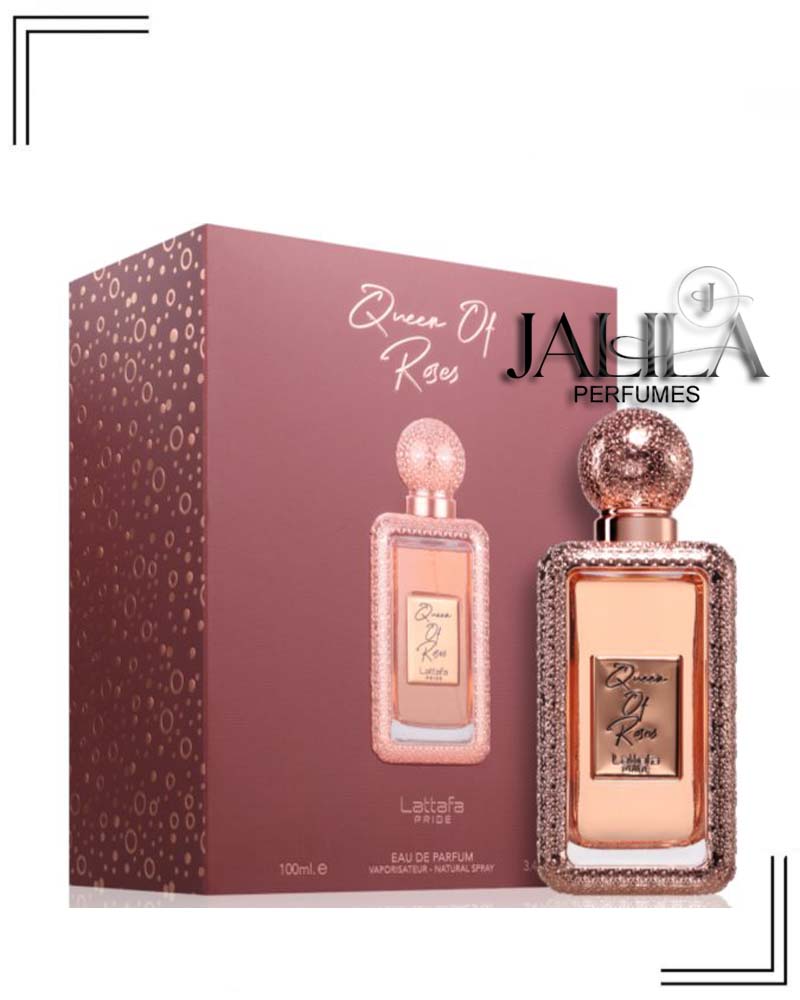 Lattafa Queen of Roses is a luxurious Oriental Floral Eau de Parfum for women, launched in early 2026. It is designed as a modern, regal tribute to the rose, blending velvety floral notes with warm spices and a creamy base. Top Notes:- Pink Pepper, Rose. Heart Notes:- Saffron, Patchouli, Jasmine. Base Notes:- Vanilla, Amber and Musk