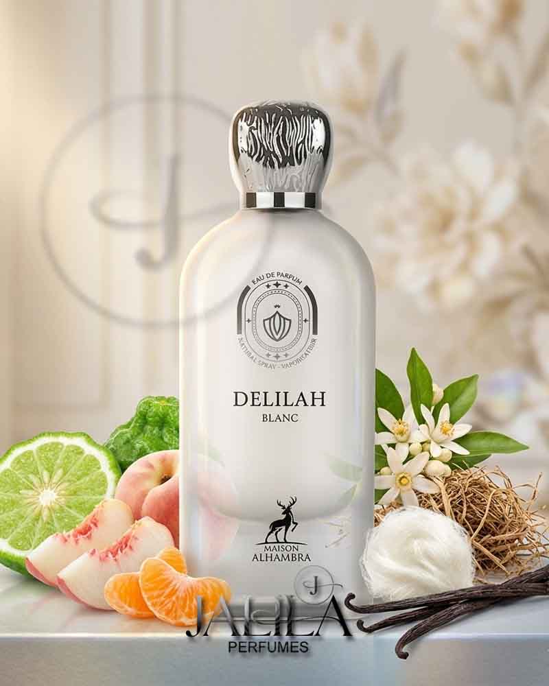 MAISON ALHAMBRA DELILAH BLANC FOR WOMEN EDP 100 ML BD7.500 BD10.000 25%OFF Maison Alhambra Delilah Blanc is a Floral Fruity fragrance for women. Delilah Blanc was launched in 2024. Top notes:- Bergamot, White Peach and Mandarin. Middle notes:- Orange Blossom and Vetiver. Base notes:- Musk and Vanilla. Add to cart PRODUCT DESCRIPTION main accords citrus, musky, powdery, white floral, sweet, fruity, aromatic, fresh spicy, woody. Top Notes Bergamot White Peach Mandarin Middle Notes Orange Blossom Vetiver Base Notes Musk Vanilla MAISON ALHAMBRA DELILAH BLANC, MAISON ALHAMBRA DELILAH, MAISON ALHAMBRA, DELILAH BLANC