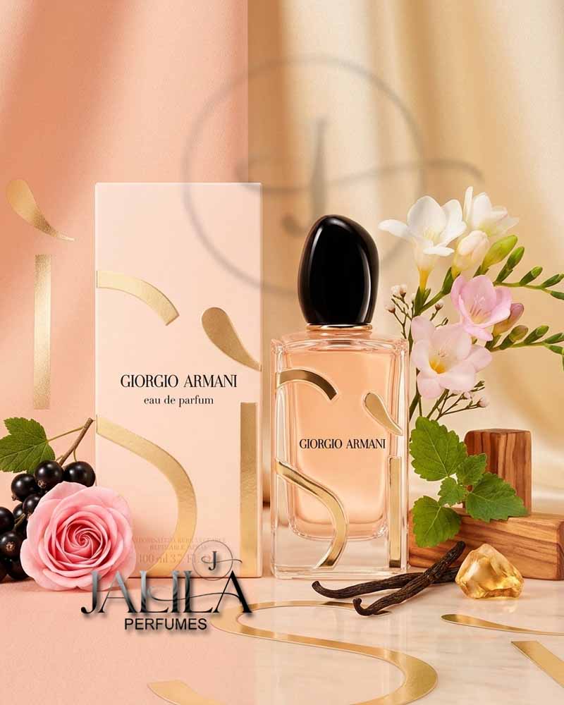 GIORGIO ARMANI SI FOR WOMEN EDP 100 ML - NEW PACKAGING BD48.750 BD75.000 35%OFF Giorgio Armani Si is a Chypre Fruity fragrance for women (New Packaging). Si was launched in 2013. The nose behind this fragrance is Christine Nagel. Top note:- Cassis. Middle notes:- May Rose and Freesia. Base notes:- Vanilla, Patchouli, Ambroxan and Woody Notes. Add to cart PRODUCT DESCRIPTION main accords woody, vanilla, aromatic, soft spicy, fruity, green, floral, patchouli, rose, earthy. Top Notes Cassis Middle Notes May Rose Freesia Base Notes Vanilla Patchouli Ambroxan Woody Notes GIORGIO ARMANI SI, ARMANI SI, GIORGIO ARMANI SI FOR WOMEN