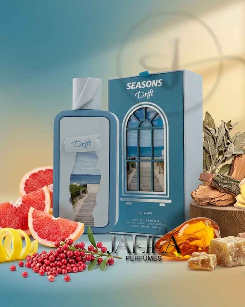 RIIFFS SEASONS DRIFT FOR UNISEX EDP 1OO ML BD10.500 BD14.000 25%OFF Riiffs Perfumes Seasons Drift is a Floral Fruity fragrance for women. This is a new fragrance. Seasons Drift was launched in 2025. Top notes:- Lemon Zest, Pink Pepper and Grapefruit. Middle notes:- Cedar, Clary Sage and Ginger. Base notes:- Sandalwood, Amber, Resin and Labdanum. Add to cart PRODUCT DESCRIPTION main accords amber, woody, citrus, powdery, balsamic, soft spicy. Top Notes Lemon Zest Pink Pepper Grapefruit Middle Notes Cedar Clary Sage Ginger Base Notes Sandalwood Amber Resin Labdanum RIIFFS SEASONS DRIFT, RIIFFS SEASONS, RIIFFS